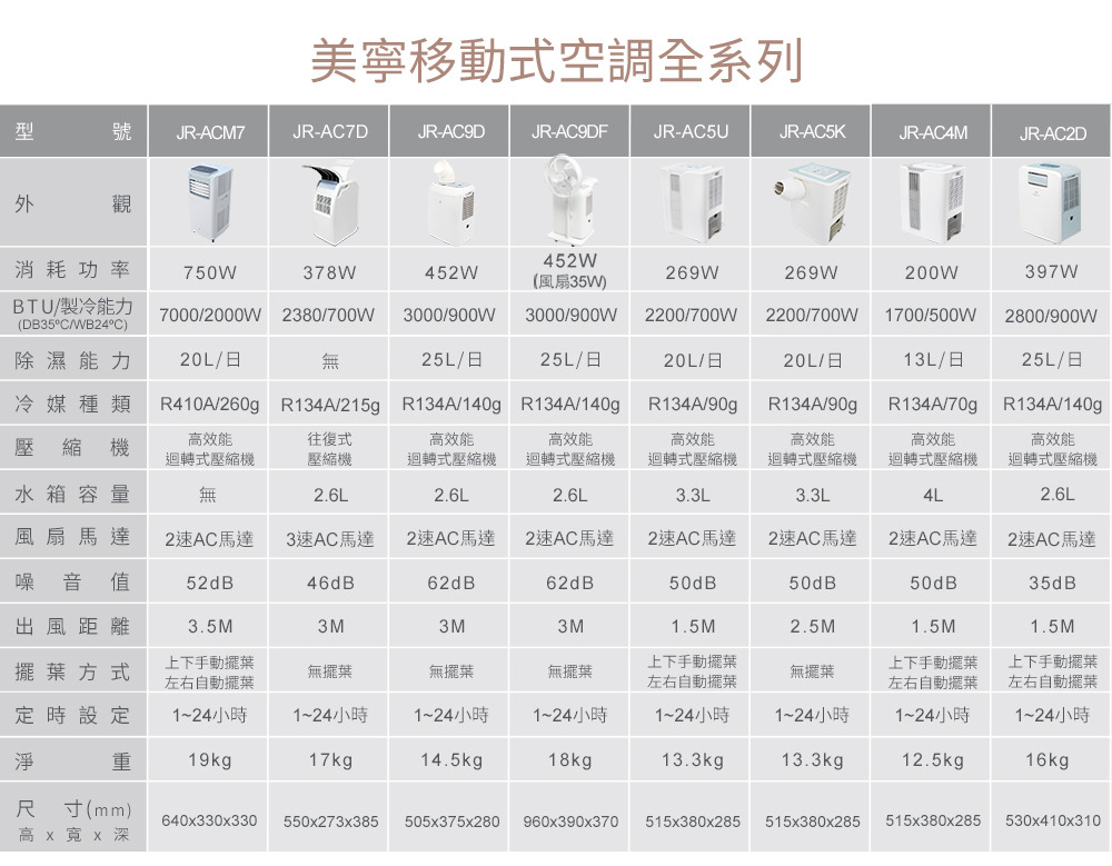 美寧免排熱管雙冷加強型移動式冷氣(JR-AC5U)